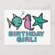 A cartoon fish, seahorse and starfish announce the presence of the birthday girl!