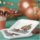 An excited birthday girl wearing a party hat and has a gift. This design looks really effective on these Paper Plates