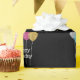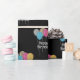 The design features silver, gold, pink, and blue glitter effect balloons on a black background. You can edit and personalise the words "happy birthday" and the background colour.
