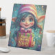 Celebrate your sister’s special day with this enchanting and whimsical birthday gnome illustration! Featuring a cheerful, wide-eyed gnome with vibrant blue hair, a pink-striped hat, and a beautifully wrapped gift that reads "Happy Birthday Sister". he background sparkles with floating confetti, ribbons, and a dreamy fantasy atmosphere, making it an ideal choice for a heartwarming and playful birthday surprise.