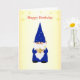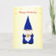 Birthday Gnome with magic lamp on light yellow background Card. Text can be personalised.