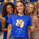 For a blue, dark t-shirt. Personalise and add a name and age. White letters. Decorated with golden balloons.