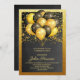 Black and gold balloons And gold glitter confetti birthday party invitation for any age or gender.