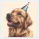 Cute cartoon illustration of Golden Retriever dog wearing a birthday hat. Perfect for pet lovers or dog parents.