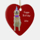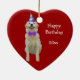 This ornament features a Golden Retriever wearing a party hat. Customisable text is available or delete existing text.