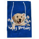 Birthday Golden Retriever On Blue Leather Medium Gift Bag
