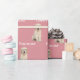 Happy Birthday golden retriever wearing black-rimmed glasses on blush pink background.