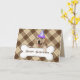 black glasses and party hat on golden retriever dog on large bone and brown plaid for general birthday