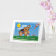This merry meeting of an elephant, a giraffe, and a bunny rabbit along with a yellow balloon and the moon makes a birthday greeting card with the quality of childlike innocence and wonder.