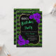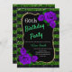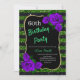 Birthday Green Black Stripes Glitter Purple Roses Invitation