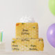 A golden background with a bee honeycomb pattern and happy smiling bumble bees. Decorated with sweet dripping honey. Black hand lettered script and the text: Happy Birthday
