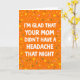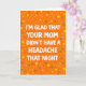 This card is great fun and good quality. I loved the humour inside and on the back. There is the opportunity to change the orientation of this card from landscape to portrait, which I did. It is relatively straightforward to amend the typeface to fit the new orientation. It was well packaged with no plastic. The printing on this card is excellent.