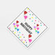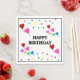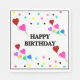 Happy birthday is written in black typography. Colorful flying heart balloons. Fun polka dots in turquoise blue, pink, yellow and black polka. Original Artwork Design © TamiraZDesigns.
