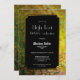 A black high tea birthday party invitation featuring a vibrant gold-painted frame.