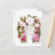 Pink and white roses arranged in the shape of a horseshoe on a vintage scrapbook card from the late 1800s.
