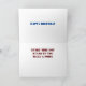 This card is great fun and good quality. I loved the humour inside and on the back. There is the opportunity to change the orientation of this card from landscape to portrait, which I did. It is relatively straightforward to amend the typeface to fit the new orientation. It was well packaged with no plastic. The printing on this card is excellent.