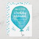 Pop on over, it's birthday party for your little boy! This adorable birthday invitation features a aqua blue watercolour balloon and handwritten typography which is modern and on-trend. The back features a watercolour spotty pattern. All details except for the heading 'Pop on over for a birthday celebration' is customisable.