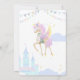Birthday invitation with an adorable unicorn with wings, which is surrounded by cute pictures of a magical castle, clouds and festive bunting.