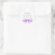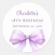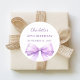 A white background color. Decorated with a large lavender colored bow. Personalize and add the name and date.
