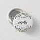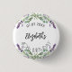 A button for a boho, french country style party, any age. A chic white background decorated with lavender flowers and eucalyptus greenery. The text: The name is written with a large modern hand lettered style script. Personalise and add a date, name and age.