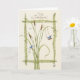 Birthday card. Whimsical illustration of birds swinging in the cattails.