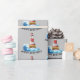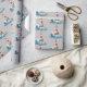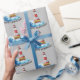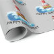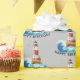 Red and white striped lighthouse with blue wave, Happy Birthday text, and seagulls on a grey background.