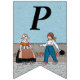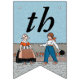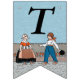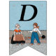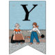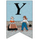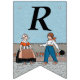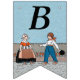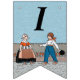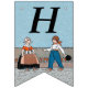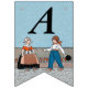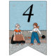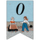 This flag shaped bunting banner has a little Dutch girl and boy in vintage traditional clothing with a row of red tulips behind them on blue background. Customise the Happy 40th Birthday text with the templates.
