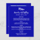 Birthday menu royal blue white fun facts photo