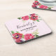 Birthday Modern Red Pink Flowers on Light Pink Coaster