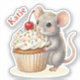 A sweet illustration of a cute little mouse carrying a vanilla cupcake with sprinkles and a cherry on top! You can edit the name in the personalize area.