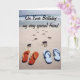 Design is brilliant - there is a male version and a female version of this cartoon and I bought both! You can personalize all the type on this card. I love these cartoon cards from Le Grand Art. I will be coming back to buy more. So pleased with the quality. Great colour and good quality cardstock.