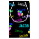 Colourful balloon bouquet on black with personalised name.