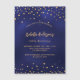 A navy blue background decorated with golden hearts. The blue colour is uneven. Personalise and add your name and party details.