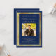 An elegant, modern, simple birthday invitation. A navy blue background decorated with faux gold frames. Personalise and add a photo name and details. Golden text.