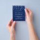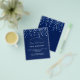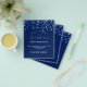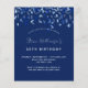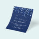A modern, elegant and invitation. A navy blue background decorated with blue confetti. Personalise and add a name and details. White text.