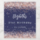 A navy blue background. Decorated with rose gold confetti. Personalise and add a name, age and the date. White text.