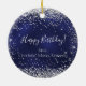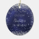 An ornament for a girly and glamorous 21st (or any age) birthday . A navy blue background with faux silver glitter, sparkles. The blue color is uneven. On the front: Personalize and add a date, a name and age.