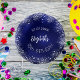 Birthday navy blue silver glitter name paper plate