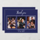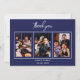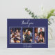 Add 3 of Your birthday photos, vertical size, a date, name, and the thank you note. A classic navy blue background with white text and frame. Personalise and add your thank you note and name.