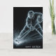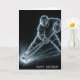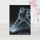 A striking neon sketch of a hockey player in motion against a dark background captures the energy and speed of the athlete with detailed lines and sparks flying as the skate hits the ice.