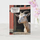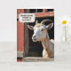 A farm goat peeking out of a rustic barn window with a speech bubble for a getting old birthday.