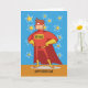 With a birthday right on Father’s Day, this card will celebrate both! He will feel like a superhero when he receives this card. A caped hero is standing proudly in front of a blue background filled with stars.