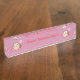 This awesome nameplate for your desk features a cute brown owl with big sleepy eyes. The owl is holding a pretty pale pink balloon and a bouquet of bright pink flowers wrapped in a pale pink cone.