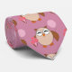This awesome tie features a cute brown owl with big sleepy eyes. The owl is holding a pretty pale pink balloon and a bouquet of bright pink flowers wrapped in a pale pink cone.