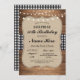 Birthday Party 50th Check Rustic Wood Black White Invitation