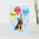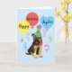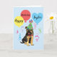 Happy birthday greetings with this cute design featuring a cute, party-hat-wearing German Shepherd puppy surrounded by colourful balloons and streaming. Name can be easily changed; just click on customise button.