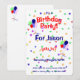 Birthday Party Invite Card with balloons and confetti. Customizable text is ready for you to personalize for your event!