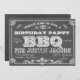 Birthday Party BBQ - A vintage retro looking Birthday Party BBQ (bar b que) looking chalkboard with white chalk, template with ornamental designs. To see more invitation designs visit us at GlitterInvitations.com or zazzle.com/glitterinvitations