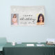 A banner for a girly and glamourous birthday party for two girls, women. A faux silver metallic looking background with faux glitter dust. Add your own 2 two photos of the birthday girls. Text: Happy Birthday. The word Birthday and the names are written with a modern hand lettered style script. Can be used as a welcome banner and as party wall decoration.