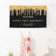 A banner for a girly and glamourous 50th (or any age) birthday party. A chic black background with elegant faux gold and silver glitter drips, paint dripping look. The text: Personalise and add a name written with a light grey colour in a modern hand lettered style script. Templates for a date and age 50. Perfect both as a welcome banner or as party decor.
